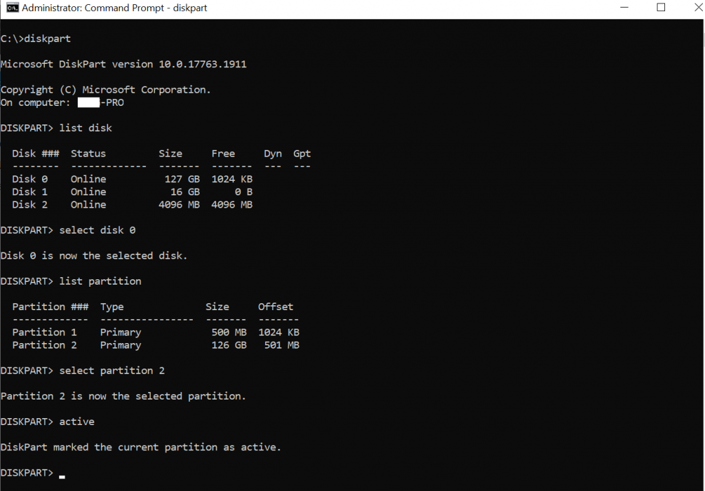 Upon executing the βactiveβ command, the DiskPart will mark the selected partition as active on the basic disk.