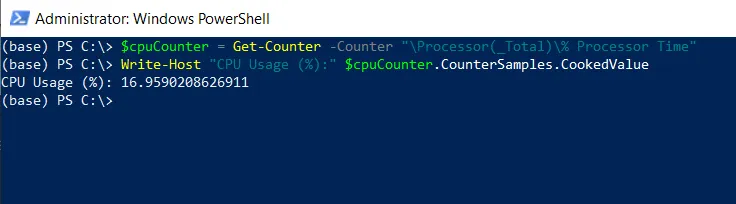Write-Host "CPU Usage (%):" $cpuCounter.CounterSamples.CookedValue