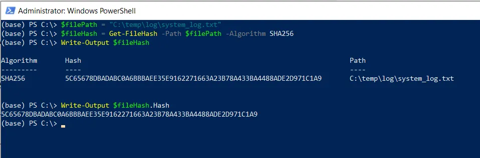Finally, we can output the hash value of the file using the Write-Output cmdlet.